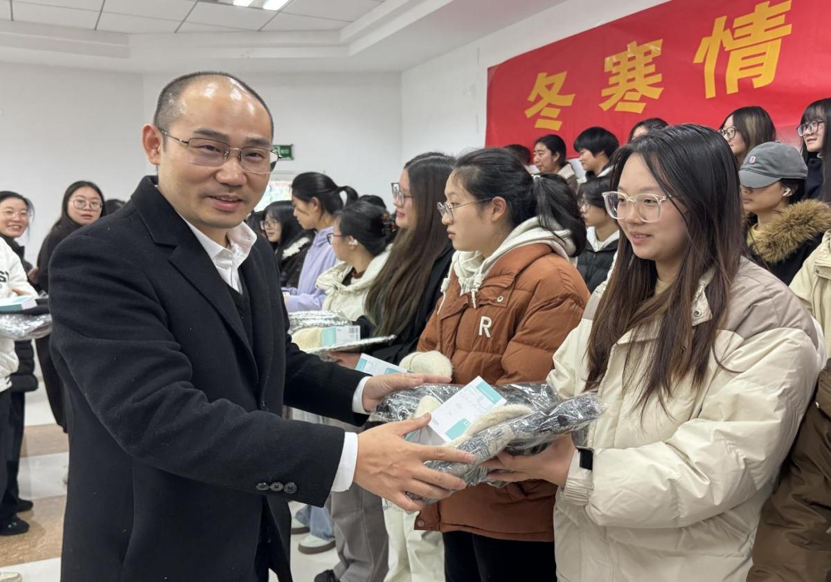 活动现场暖意融融,师生分工协作、各展所长,一盘盘形态各异、创意满满的水饺陆续成型,欢声笑语中洋溢着“家”的温馨。为更贴合学生需求,学生资助管理中心提前通过在线问卷调查精准掌握同学们的实际所需,精心挑选保温杯、暖绒围巾、棉线帽等暖冬物资作为节日礼物。这份“量身定制”的温暖,让同学们切实感受到学校的细致关怀与深切牵挂。