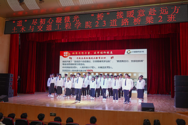 大会共分为“见贤思齐”和“勉悟精习”两个篇章,首先在歌曲《你好,未来式》以及新生数据剖析中拉开帷幕。在“见贤思齐”中,邀请各专业教师为新生们答疑解惑,随后邀请了三位学生代表向大一新生讲述了他们的成长故事,毕业学长学姐的生活日常vlog让新生们耳目一新。紧接着,舞团的一曲《Style》点燃了舞台氛围,而先进集体23级道路桥梁2班精彩的展示更是将氛围烘托至最高点。长期以来,学院与社会企业不断创新和深化合作,江苏华宁工程咨询有限公司在东南大学成贤学院教育发展基金会设立奖学金项目,用于奖励土木与交通工程学院在读的优秀本科生。活动中,学院副院长温旭丽为12位荣获“华宁奖学金”的同学颁发了荣誉证书。