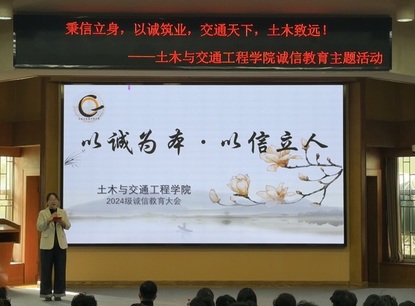 为切实引导学生树立诚信意识、坚守学术底线、筑牢职业根基,营造风清气正的校园生态,11月11日—12日,土木与交通工程学院分别于华罗庚馆101教室、真知馆报告厅举办了以“秉信立身,以诚筑业,交通天下,土木致远”为主题的诚信教育主题大会。东南大学成贤学院党委学工部部长、学生处处长施杰,土木与交通工程学院相关领导、辅导员老师及2024、2025级全体学生共同参与了此次教育活动。